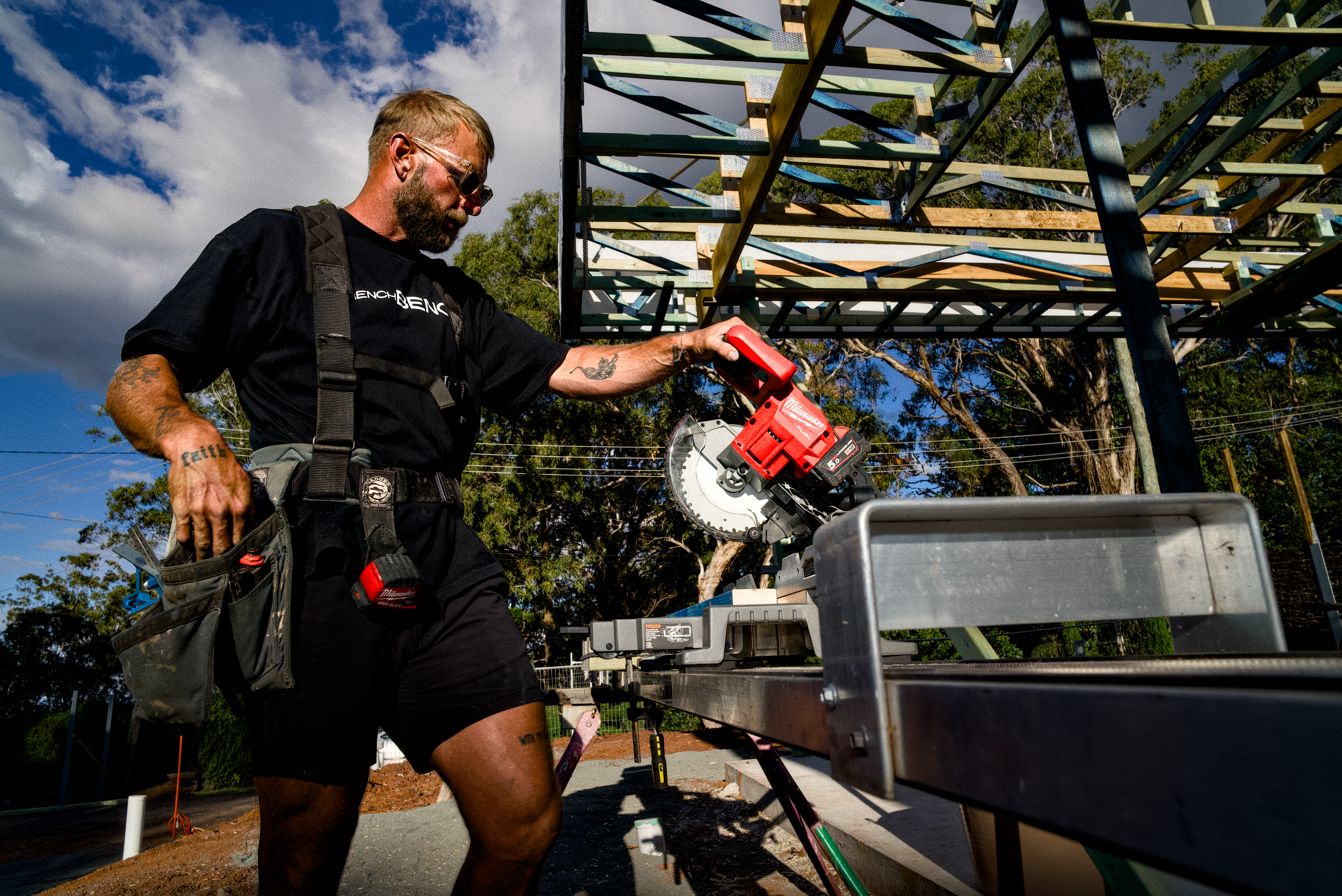 Build your new best friend on the job site. Storage for offcuts and tools. Welded, laser-cut aluminium to make a bench that'll never let you down.