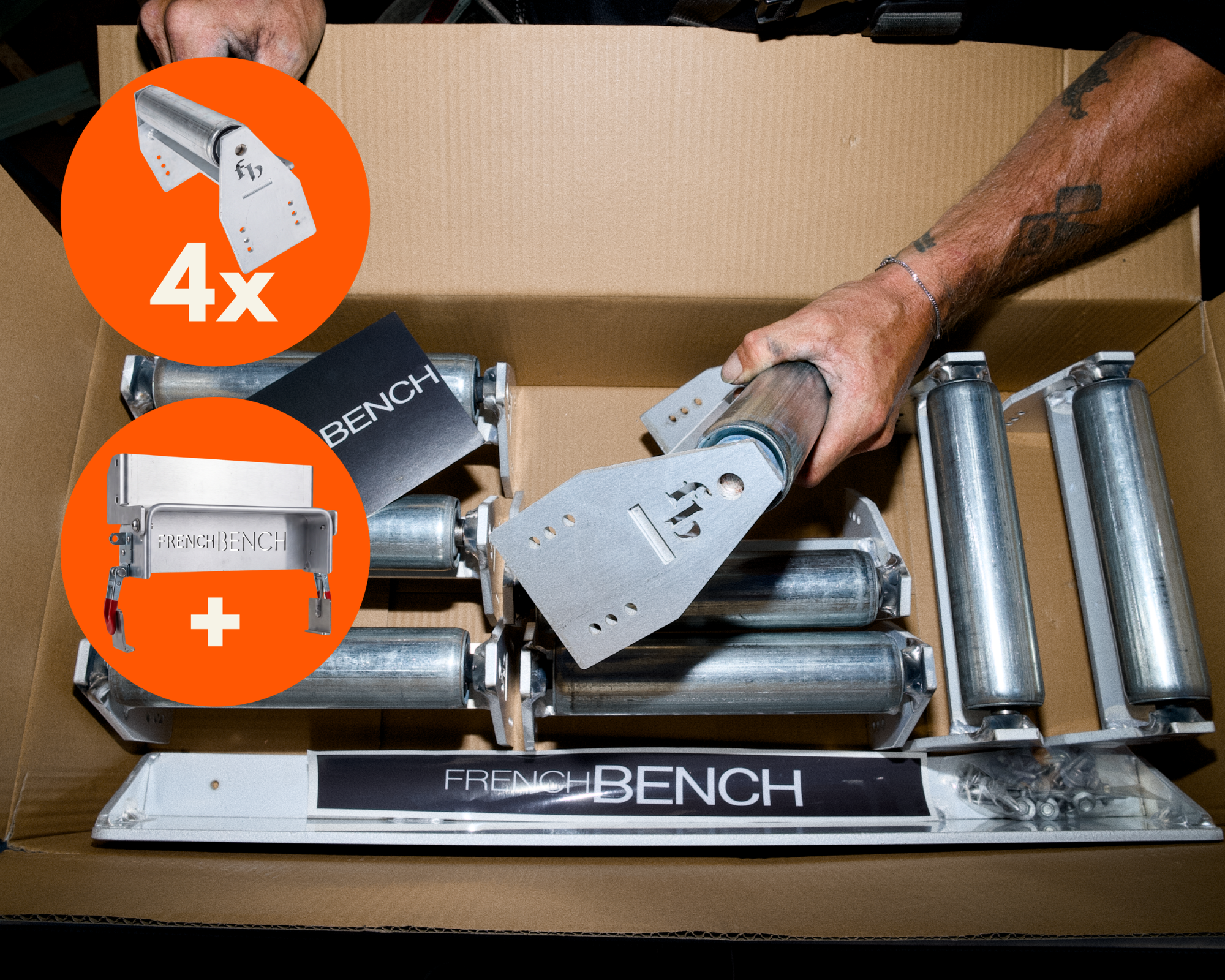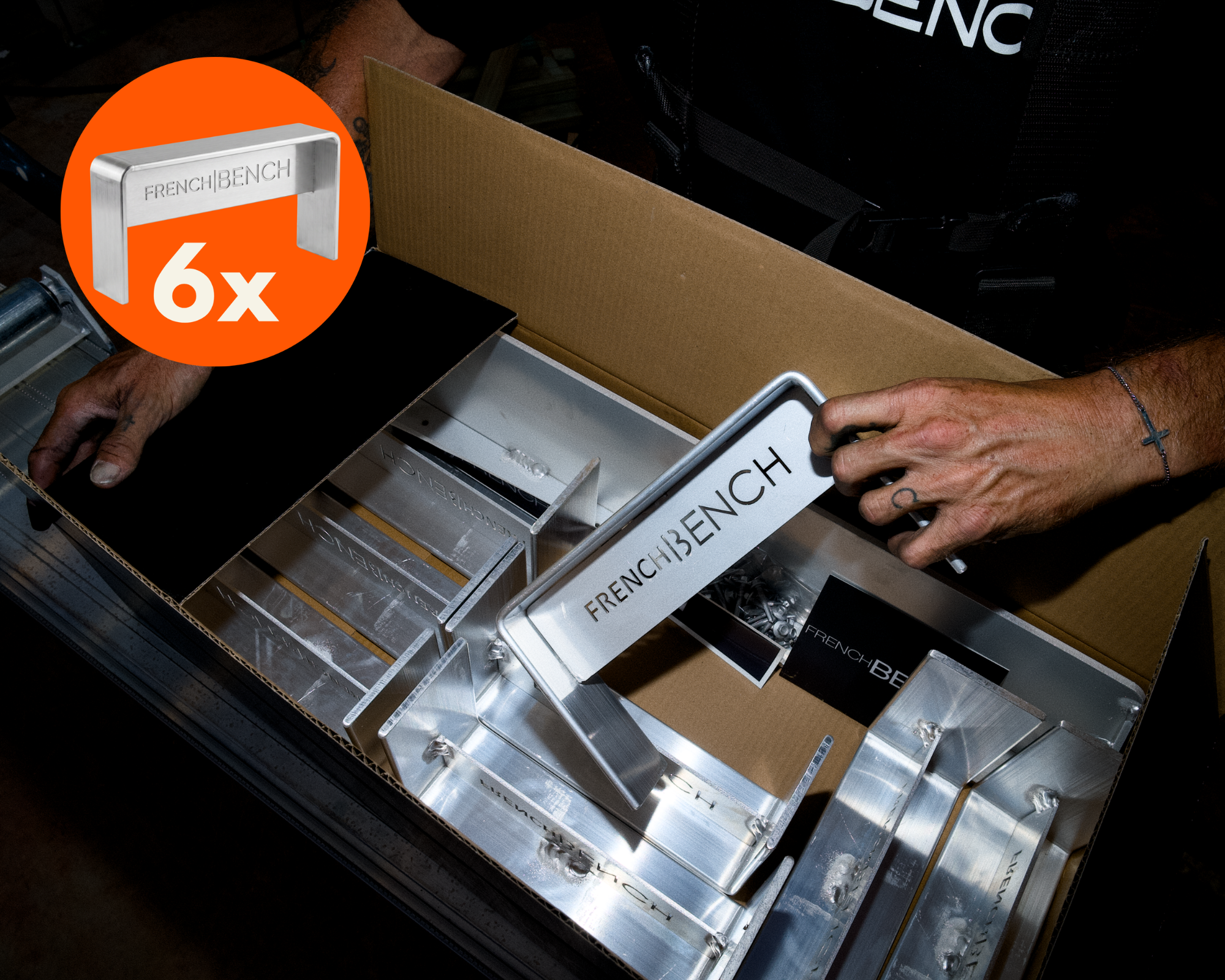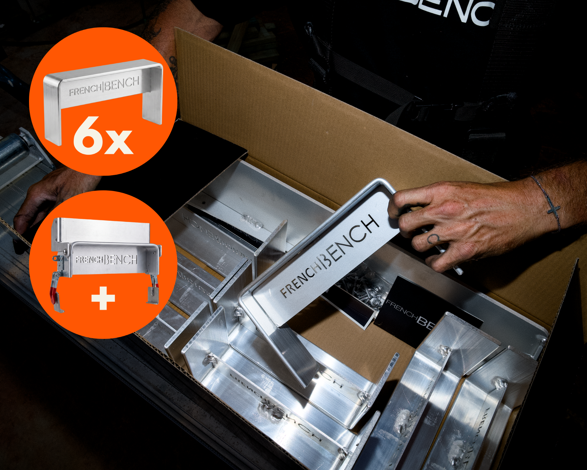 The French Bench is a kit of uprights, screws, and a base plate for your saw that all attach to your existing aluminium plank, creating a reliable, serious saw bench.